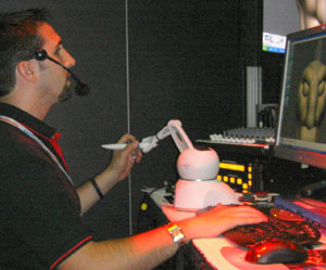Organic Modeling The last time I saw SensAble Technology at SIGGRAPH, their product was not ready for prime time - it wasn't integrated with mainstream packages, cost tens of thousands of dollars, and required a dual-processor machine to run. This year, their ClayTools System is priced just above $2000 including hardware and software, and fully integrated with Maya or Max. I spent a while testing the device, and it takes some getting used to, but once you are into it and have it adjusted right it gives an amazing sensation of sculpting into and carving away from clay. The combination of a 3D input device, force feedback so you can feel what you are sculpting, and the new ClayTools software all add up to a system that anyone serious about organic modeling should check out. Because what you are sculpting would turn out to be millions of polygons, the software includes functions for creating a controlled subdivision surface plus displacement or normal maps to represent the extra detail, as well as including plug-ins for Maya or Max that allow you to use the hardware within those programs. The only big competitor to ClayTools is Pixologic Z-Brush, a software-only application that is much cheaper but doesn't offer the feeling of sculpting with clay. Z-Brush was shown at the Expo in version 2.5, and is looking like a stronger and more popular system every year. Autodesk 3D Studio Max users were excited by new features unveiled for 3D Studio Max. According to one source, everyone at the User's Group meeting who creates texture maps was "having orgasms over" the new Pelt Mapping feature for unwrapping and evenly distributing UV's over surfaces. This looks like the kind of feature that other companies will have to get busy copying to keep their users satisfied. Also interesting at the Autodesk booth was their new compositing program Toxik. While Autodesk already offers a bewildering array of different compositing programs, this new one looks to be a serious attempt to compete against Shake in the high-end Linux-based feature film compositing market. While still in version 1, it already appears to have some advantages in its interface and some interesting nodes that could give it a few advantages over Shake. Right now, Shake seems to own the feature film compositing market, being used on most big effects films and animated features. If any other programs shake things up and create more competition, that can only be good for the market. Shake Shake showed a nice new version, Shake 4, at it's Users Group Meeting. In addition to some nice user interface improvements, it also had new optical flow based image processing that looked as if it could correct both the flow of time and image scaling with impressive quality results. As you'd expect for the leading film compositing application, there were also great presentations of customer work. ILM showed work they did in Shake on War of the Worlds and Star Wars Episode 3, and there was also a presentation of work done on the hit TV series South Park. Unfortunately, current Shake owner Apple wasted half of the meeting on platform-advocacy. If you think platform-advocacy threads are a boring waste of time on the Internet, they are twice as dull in a hotel conference room. Even when Microsoft owned Softimage they didn't waste half the user's group meetings like this extolling virtues of Windows. Newtek Once upon a time, Lightwave used to have a clearly defined niche: it was "the little engine that could" - the $2000 package that could do a lot of the same things the big boys costing $30,000 and up could do. Times have changed. When Alias slashed Maya Complete's price to $1995 a few years ago, Newtek lowered Lightwave's price to $1595. Last year, when Softimage slashed XSI Foundation down to $595, Newtek didn't have a response. This year, they have almost cut their price in half, so that Lightwave is now going for only $795. However, if you think about what a production company pays an animator for each week of work, you have to wonder if the price difference between Lightwave and superior animation packages will be enough of a niche to keep Lightwave going. Only time will tell. |