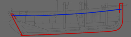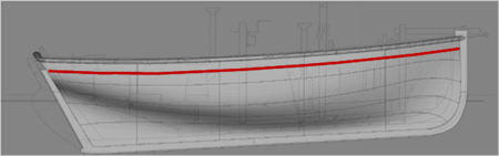 NOTE: The curve #1 in the background image may be difficult to see, because several areas of the curve are poorly reproduced on the blueprints. This curve runs down the middle of the boat (from the top view) and forms the crown or curvature of the deck.