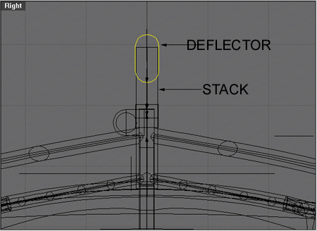 From the front view drag the stack and deflector into position shown below.