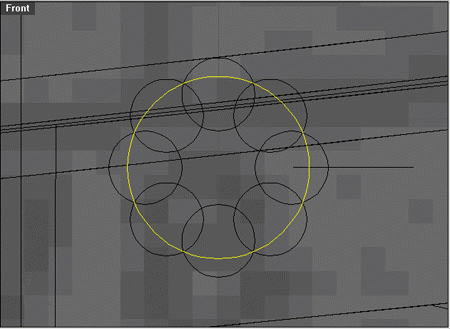 Turn on 'Int' osnap. Make a curve going through outer intersections of the circles as shown below.
