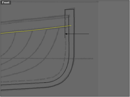 Hit Trim, select the deck curve as the cutting object, and trim off the pieces indicated by the arrows below.