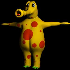 | Jeremy Birn rendered this character called "Goofy Gus" for a development project at Palomar Pictures in 1996. The character was conceived by director Tom Stern, although this test rendering was not the final appearance that Tom was looking for. Jeremy is a freelance animator in Hollywood, California. He earned his MFA at the Art Center College of Design, and has formerly worked as an Animation Director at Palomar Pictures. He teaches a computer graphics course at Cal Arts in Valencia, CA, and is the director of the "Secrets of Softimage 3D" instructional videos. Jeremy is not really a "visitor" to 3dRender.com, he is the webmaster, and has more of his work on display in the Productions, Tutorials, and Thesis sections of 3dRender.com. This first image by the webmaster was used to launch this Visiting Artist Series on September 29, 1997. Since that date, many pages have been added to this section, featuring different artists from around the world. The fur on the skin, and the sweat and tears on the tounge and eyes, are all particles created in Alias Power Animator. The test rendering below shows the exact same model, but with different shaders. The shaders in the image below apply different textures to the surface, and do not emit any particles. Notice how big a difference is made by different shaders. Sometimes it helps to remember that your shaders are what the viewer actually sees, and that your geometry only determines where the shaders will show up.  |