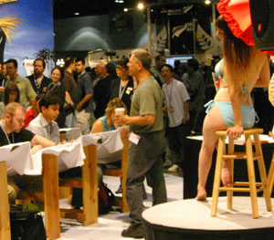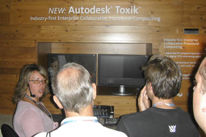 Organic Modeling The last time I saw SensAble Technology at SIGGRAPH, their product was not ready for prime time - it wasn't integrated with mainstream packages, cost tens of thousands of dollars, and required a dual-processor machine to run. This year, their ClayTools System is priced just above $2000 including hardware and software, and fully integrated with Maya or Max. I spent a while testing the device, and it takes some getting used to, but once you are into it and have it adjusted right it gives an amazing sensation of sculpting into and carving away from clay. The combination of a 3D input device, force feedback so you can feel what you are sculpting, and the new ClayTools software all add up to a system that anyone serious about organic modeling should check out. Because what you are sculpting would turn out to be millions of polygons, the software includes functions for creating a controlled subdivision surface plus displacement or normal maps to represent the extra detail, as well as including plug-ins for Maya or Max that allow you to use the hardware within those programs. The only big competitor to ClayTools is Pixologic Z-Brush, a software-only application that is much cheaper but doesn't offer the feeling of sculpting with clay. Z-Brush was shown at the Expo in version 2.5, and is looking like a stronger and more popular system every year. Autodesk 3D Studio Max users were excited by new features unveiled for 3D Studio Max. According to one source, everyone at the User's Group meeting who creates texture maps was "having orgasms over" the new Pelt Mapping feature for unwrapping and evenly distributing UV's over surfaces. This looks like the kind of feature that other companies will have to get busy copying to keep their users satisfied. Also interesting at the Autodesk booth was their new compositing program Toxik. While Autodesk already offers a bewildering array of different compositing programs, this new one looks to be a serious attempt to compete against Shake in the high-end Linux-based feature film compositing market. While still in version 1, it already appears to have some advantages in its interface and some interesting nodes that could give it a few advantages over Shake. Right now, Shake seems to own the feature film compositing market, being used on most big effects films and animated features. If any other programs shake things up and create more competition, that can only be good for the market. Shake Shake showed a nice new version, Shake 4, at it's Users Group Meeting. In addition to some nice user interface improvements, it also had new optical flow based image processing that looked as if it could correct both the flow of time and image scaling with impressive quality results. As you'd expect for the leading film compositing application, there were also great presentations of customer work. ILM showed work they did in Shake on War of the Worlds and Star Wars Episode 3, and there was also a presentation of work done on the hit TV series South Park. Unfortunately, current Shake owner Apple wasted half of the meeting on platform-advocacy. If you think platform-advocacy threads are a boring waste of time on the Internet, they are twice as dull in a hotel conference room. Even when Microsoft owned Softimage they didn't waste half the user's group meetings like this extolling virtues of Windows. Newtek Once upon a time, Lightwave used to have a clearly defined niche: it was "the little engine that could" - the $2000 package that could do a lot of the same things the big boys costing $30,000 and up could do. Times have changed. When Alias slashed Maya Complete's price to $1995 a few years ago, Newtek lowered Lightwave's price to $1595. Last year, when Softimage slashed XSI Foundation down to $595, Newtek didn't have a response. This year, they have almost cut their price in half, so that Lightwave is now going for only $795. However, if you think about what a production company pays an animator for each week of work, you have to wonder if the price difference between Lightwave and superior animation packages will be enough of a niche to keep Lightwave going. Only time will tell. |