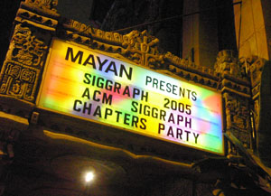 Banner Year for ILM ILM usually has a presence at SIGGRAPH, but with presenters like George Lucas and Dennis Muren addressing attendees, and Star Wars commemorations like an X-wing fighter in the atrium and storm troopers on the show floor, this was ILM's year. People came out raving from the course on Digital Face Cloning, where ILM had presented its cutting-edge work on creating a photoreal digital double of the baby in Lemony Snicket's A Series of Unfortunate Events that replaced the real baby in a large percentage of the shots in the film. George Lucas spoke in this year's Keynote address. People started lining up three hours before Lucas began to speak. George Lucas is in many ways one of the greatest movie producers and technologists ever, although some debated how history will regard his talents in other areas such as writing and directing. As well as enjoying commercial success, he had advocated and brought about huge improvements in the creation of digital cinema and digital effects. Surprisingly, considering his contributions to our field, Lucas was the subject of considerable controversy among CG artists attending the conference. Partly this may be because his vision of the future is that special effects won't be special anymore, but instead will simply considered "editing," and he is always pushing for visual effects to be as fast, cheap, and convenient to filmmakers as possible. He also recently started a studio in Singapore to produce a Star Wars animated TV series. The government of Singapore is subsidizing the cost of starting up the studio, animators there are paid less than in his San Francisco area studios. It is not known how much feature film animation might be done in Singapore once Lucasfilm goes into production of full CG animated features. Party, Party, Party SIGGRAPH is not just about papers, presentations, and products, it's also a social gathering, in which people in the small world of CG gather to meet old friends and make new connections. In the 1990's, all the biggest studios threw lavish parties that helped build their images and helped them in recruiting. This year, as with last year, the "best party" crown goes to Blur Studios. Despite cut-backs from the big players, there were still enough parties going on that people often had several conflicting events to choose between on each night. Boston, MA After being stuck in LA two years in a row, it looks as if everyone is going to love SIGGRAPH 2006 in Boston July 30 - August 3. I'm certainly going to be there! |