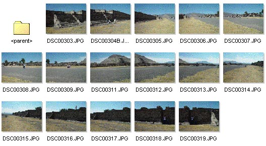 1. Mounting the camera on a tripod would be the best way to shoot these pictures, but I was traveling without a tripod, so I just held the camera as level as possible, and turned around, shooting 16 pictures that covered the scene all the way around me. I gave about 25% overlap between pictures so that, as you can see in the thumbnails above, the right edge of each shot shows the same area as the left side of the next shot, making it possible to seamlessly stitch them together. Your own pictures may vary, but it's best to get a full 360° view.