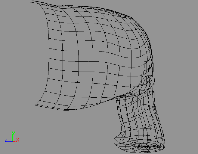 NOTE: If Zip Surfaces fails to work as shown, it is because the two surfaces were not properly matched in steps 6 and 7. Use Info > Selection to verify that they truly have the same number of points running along their shared edge, instead of just counting the points by sight. Sometimes cutting NURBS surfaces produces situations where two rows of points can overlap near an edge, effectively hiding a row of points from you.