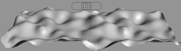 Contrast these results with having used Draw>Merge Surfaces to combine the two surfaces. Merge Surfaces would have created a new surface that was a single object, looking similar in appearance to the pair of objects that are now seamlessly stitched together with the Surface Continuity Manager. However, the SurfaceContinuityManager+ plug-in can also be used to seamlessly unite more complex groups of surfaces, producing multi-surface NURBS models which never could have been represented with a single NURBS object.