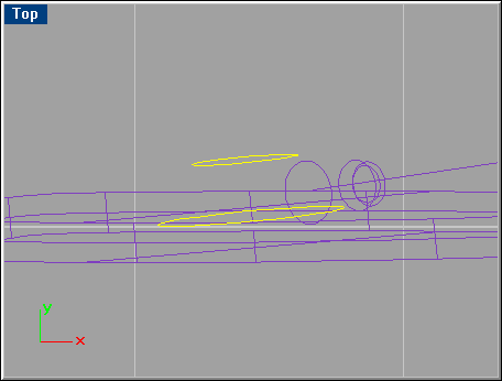 Zoom in on the reflector in the rear of the bike, and in the Top viewport, select the reflector curve and go Surface/Extrude/Straight. At the command prompt, type C for Cap=Yes, (capping the open ends) and enter a value of 0.15.