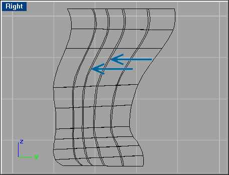 Insert isoparms as shown below (Direction=U, Symmetrical=Yes) and start stretching CVs inwards and outwards in those new rows to make the splint muscle. Use the same technique for the front leg.