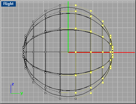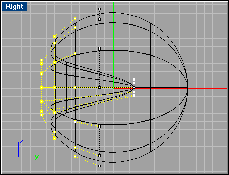 Rotate the sphere so the left end (seen from the Right viewport) is facing you in the Perspective viewport as shown below.