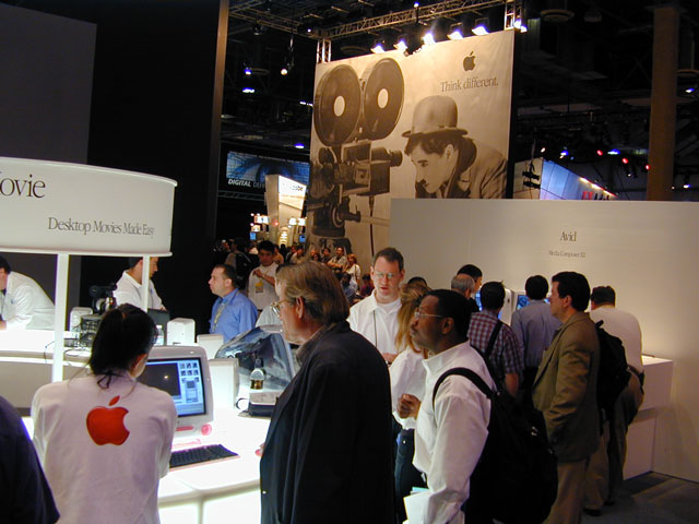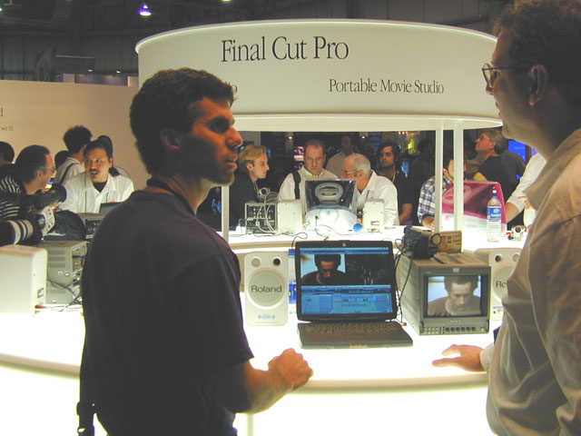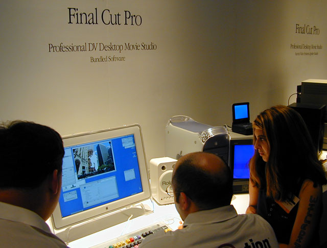 Apple Computer has been staging a John Travolta-style comeback over the past few years, turning itself from a has-been back into a star. Apple's large booth demonstrated its range of computers for content development and non-linear editing. Apple's G4 computers are some of the fastest machines on the market, and are very well suited to demanding editing, compositing, and image processing applications. Final Cut Pro (Apple's non-linear editing software) has been earning consistently high marks from professional users, with speed and power that some put ahead of much higher priced Avid systems. The $1000 price tag on Final Cut Pro seemed especially low when compared to the $4000 LCD monitors that Apple was demonstrating it on. A fast, firewire-equipped Powerbook was being billed as a "Portable Movie Studio" and was also attracting a great deal of professional interest as a portable non-linear editing system. Companies are becoming more and more willing to mix operating systems, and choose the best tool for each job, even if it means compositing on Windows NT, and editing on a Mac.