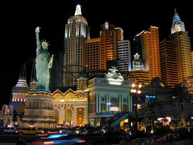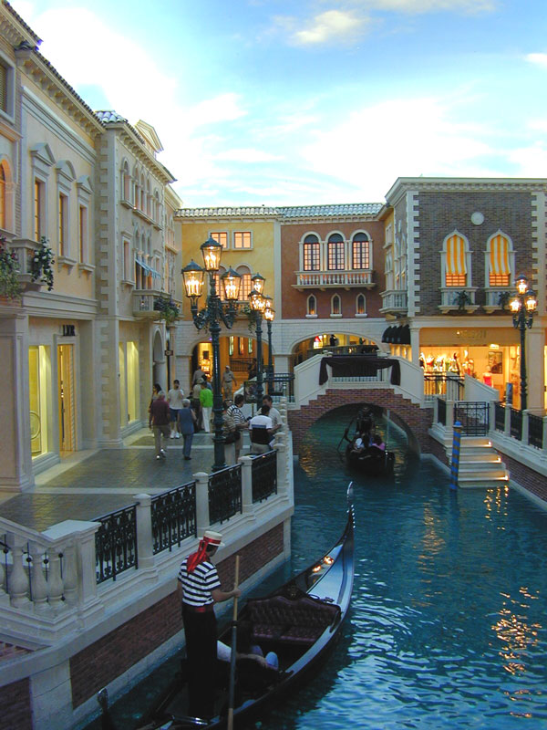 Like Hollywood studios racing to make the next summer blockbuster, Las Vegas casinos have been producing their own big-budget spectacles over the past few years. Paris Las Vegas (picture) adds an Eiffel Tower replica to the Las Vegas Skyline, while New York New York (picture) houses thousands of guests in a reproduction of New York City's most famous landmarks. The shopping and restaurant areas of the Venetian Casino boast canals, bridges, and courtyards, under a painted blue sky. Despite its growth, Las Vegas still has its tradition seedy side, and a range of entertainment not overlooked by convention attendees. Other new thematic casinos were still under construction, such as the Aladdin, which should be opened by NAB 2001.