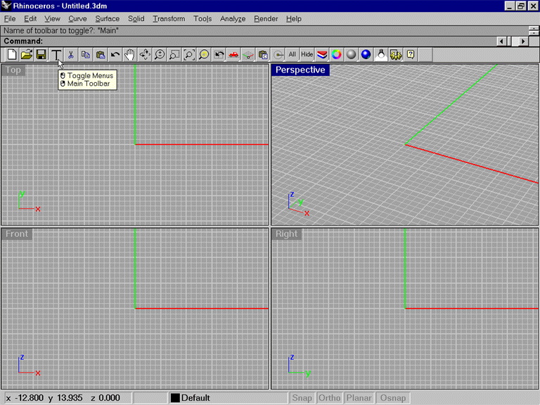 Toggling toolbars on and off can be done from icons too this lets you bring up whatever toolbar arrangement you can imagine. I have kept this one simple. This icon only toggles your left modeling toolbar off. This is why. If you click the Toggle Menus Icon you just made and then toggle off your left toolbar you will have much more screen real estate for checking your model and rendering in. This setup still gives you the main toolbar so you have rendering and other options as well as the icon to click to get back your left toolbar.