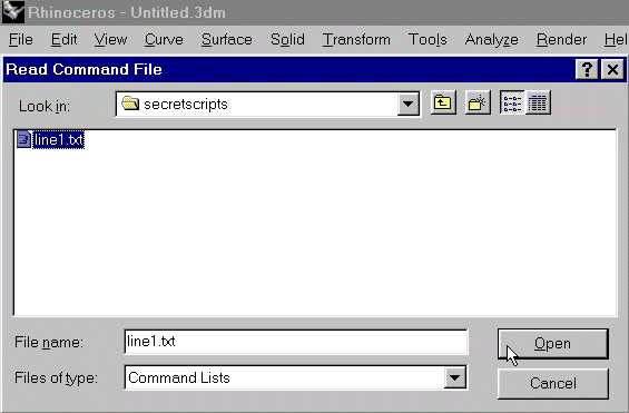 6. In Rhino at the Command prompt type " ReadCommandFile"